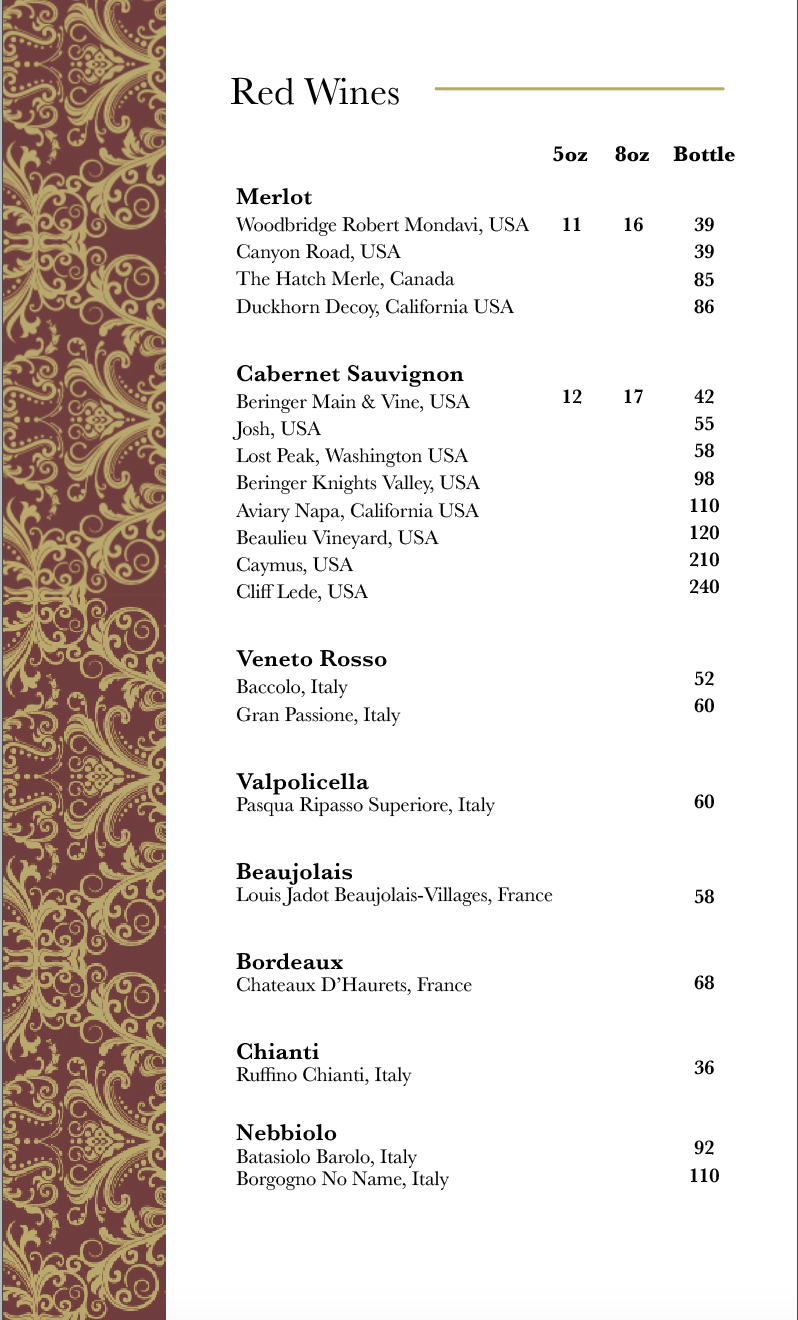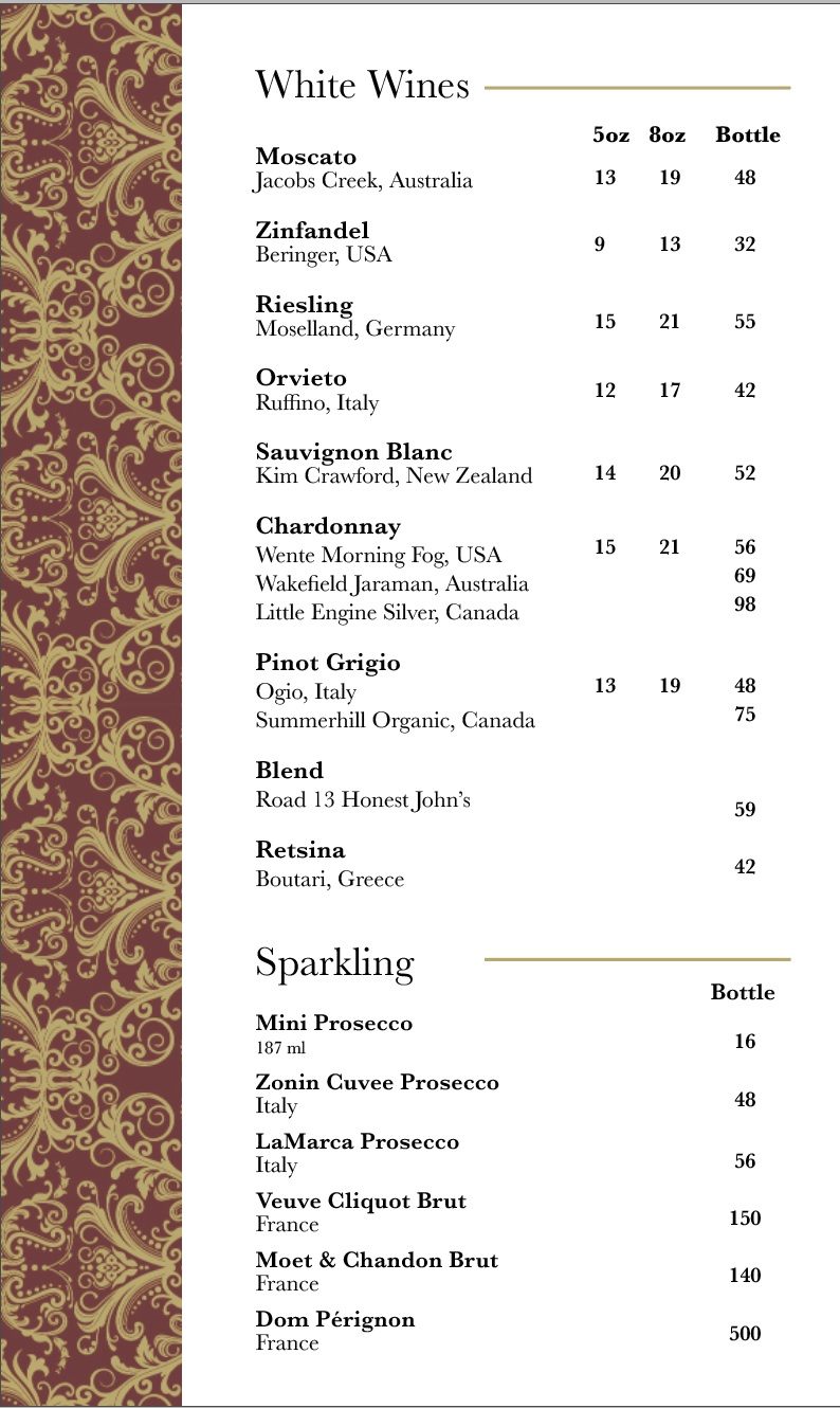 Menu items and pricing are subject to change. Please note that in-restaurant menu pricing is correct.